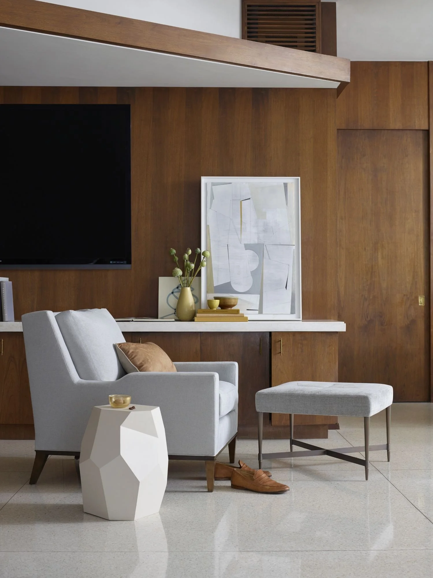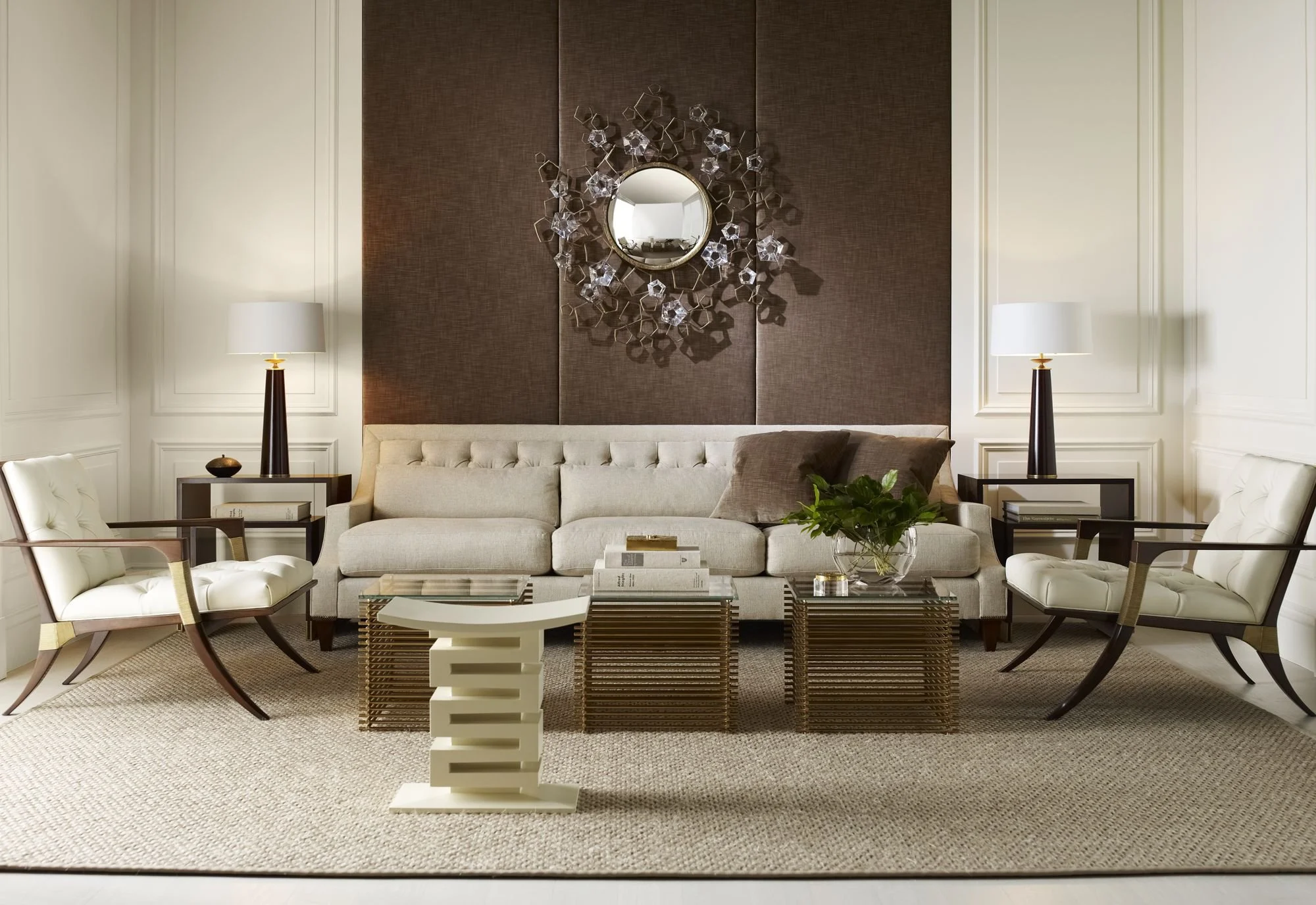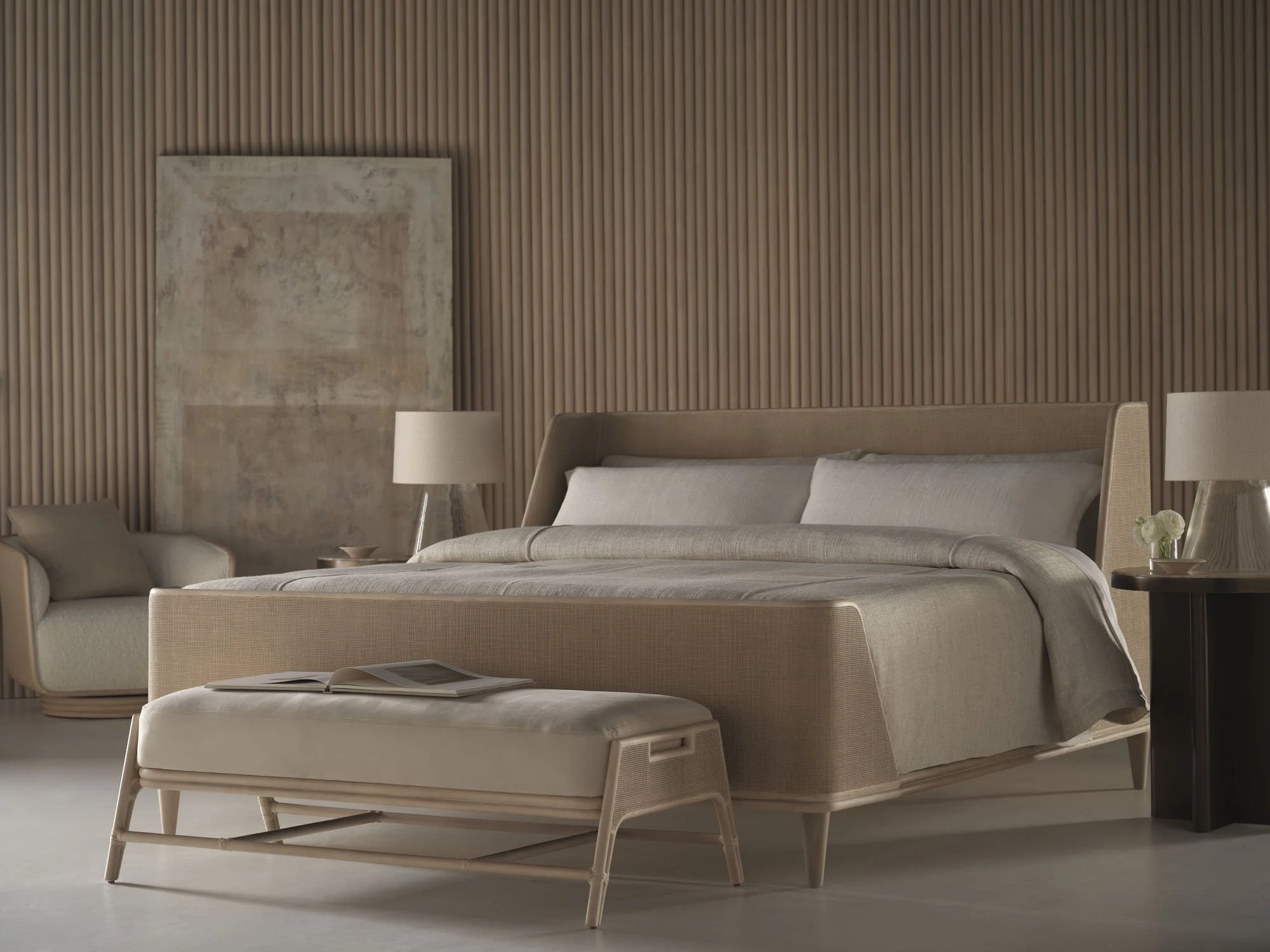 Barbara Barry’s pieces for Baker are a masterclass in this movement—curved silhouettes in Honey Onyx, warm bronze, and figured walnut that feel as serene as they are sculptural.