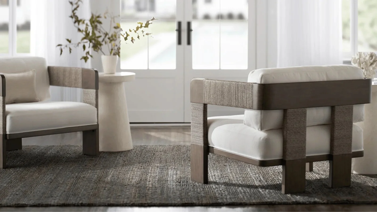 PALECEK continues to lead in natural luxury. This season brought forward an extraordinary use of organic textures: raffia-wrapped frames, hand-woven pendants, and a mix of washed wood finishes that exude softness. The shapes felt generous yet restrained, with an emphasis on quiet comfort. Standout introductions included oversized lounge chairs and tiered statement lighting—ideal for layered residential and hospitality settings.