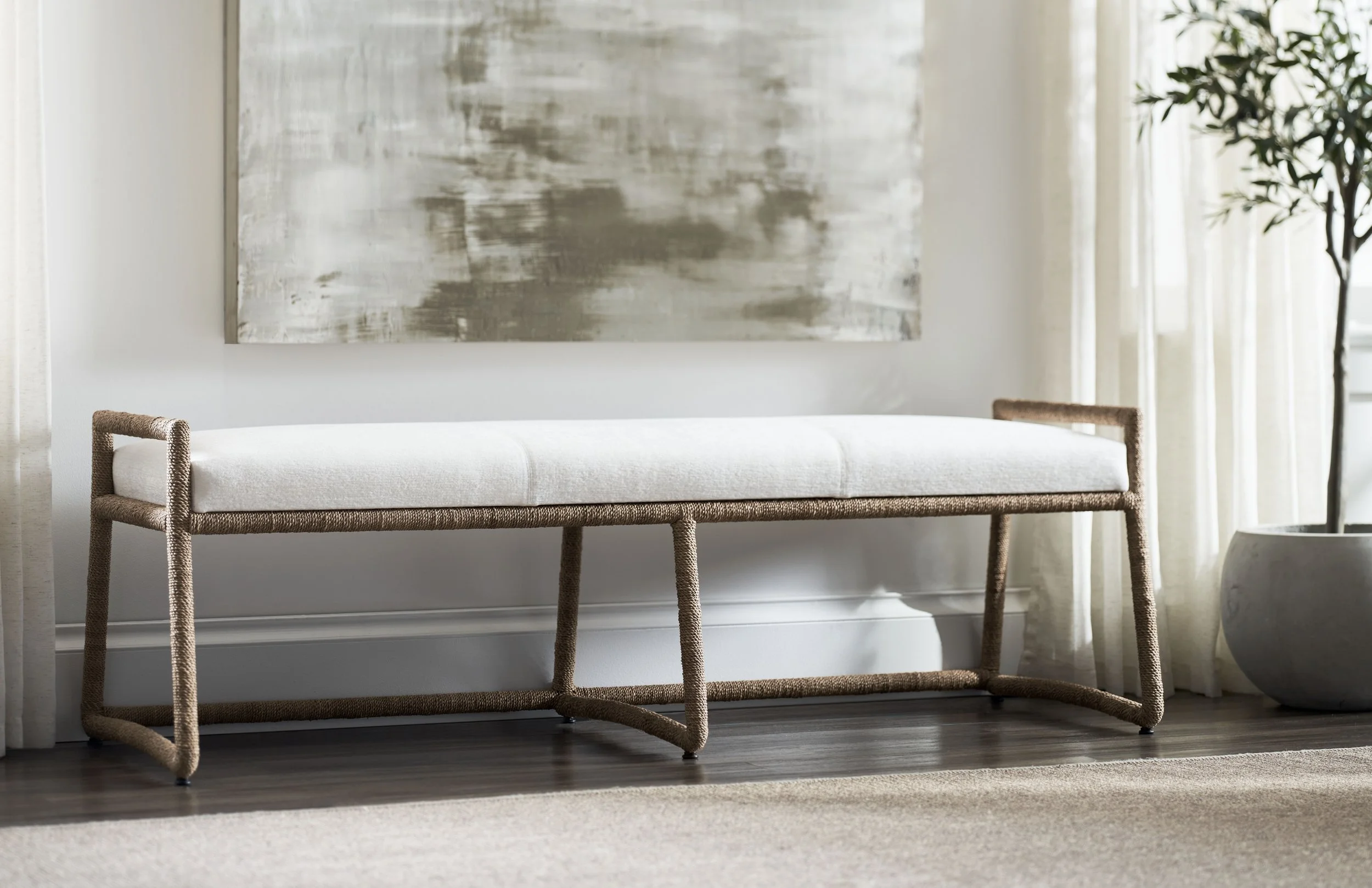 Layer with organic fabrics (linen, bouclé, or textured weaves) to soften natural materials.